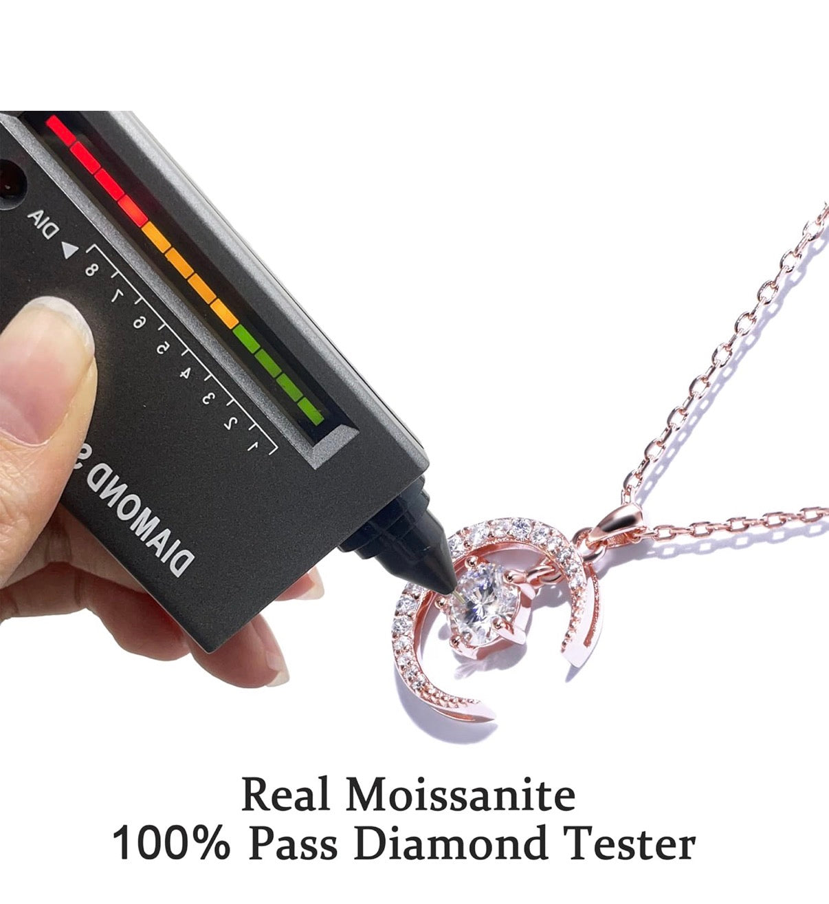 - ✦Specifications✦ Moissanite size:5.0mm; Moissanite Weight:0.5CT; Plating:Rose Gold; Chain length:16+2 inch; Matel Type: 925 Sterling Silver(Authentic S925 stamped).
