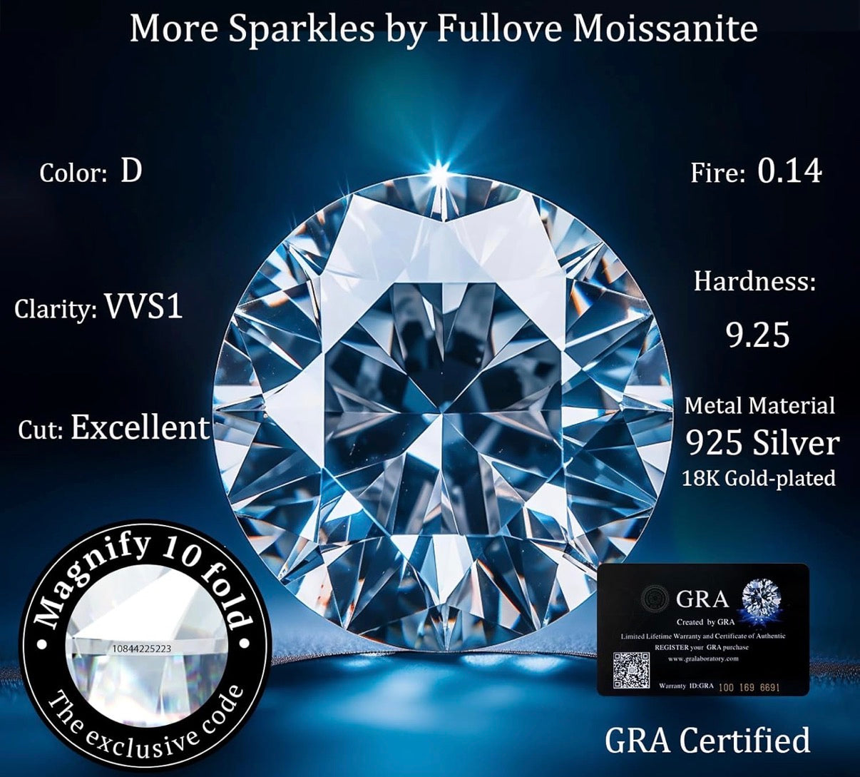 - Brilliant Sparkle: The center moissanite boasts a breathtaking 4 carats weight, ensuring exceptional brilliance and fire.