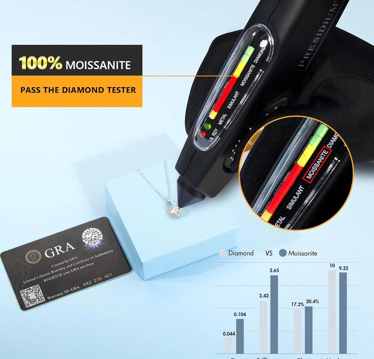 - 💎 Sparkling Moissanite Pendant: Elevate your elegance with this necklace, the moissanite necklace has 1.0 carats of brilliant-cut moissanite diamond that has a D color and VVS1 clarity. With unmatched fire and brilliance, it offers a mesmerizing alternative to conventional diamonds, unlike other gems such as white sapphire and cubic zirconia, Moissanite is nearly as hard as a diamond and more sparkly, making it virtually indistinguishable to the naked eye.