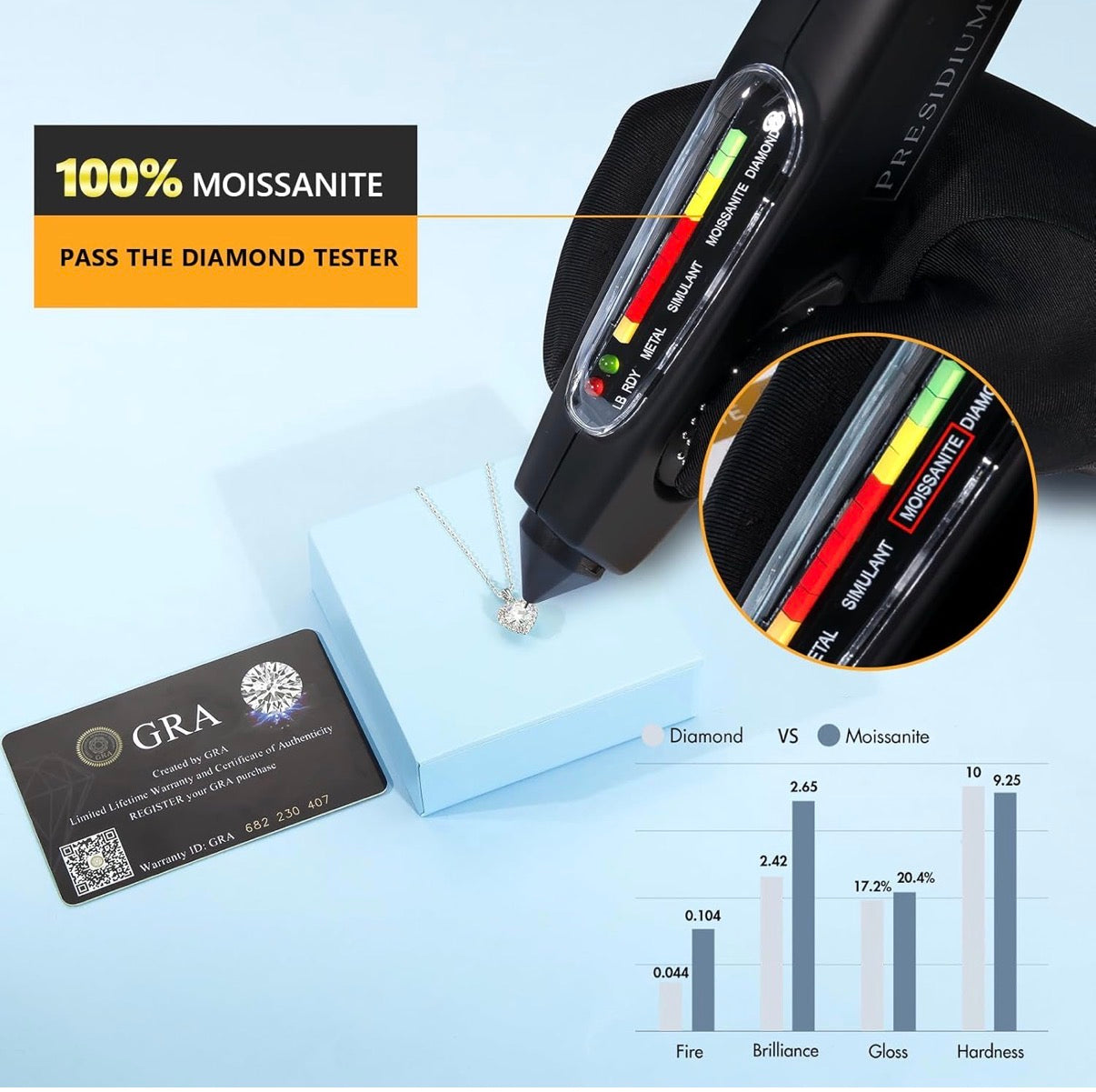 - 💎 Sparkling Moissanite Pendant: Elevate your elegance with this necklace, the moissanite necklace has 1.0 carats of brilliant-cut moissanite diamond that has a D color and VVS1 clarity. With unmatched fire and brilliance, it offers a mesmerizing alternative to conventional diamonds, unlike other gems such as white sapphire and cubic zirconia, Moissanite is nearly as hard as a diamond and more sparkly, making it virtually indistinguishable to the naked eye.