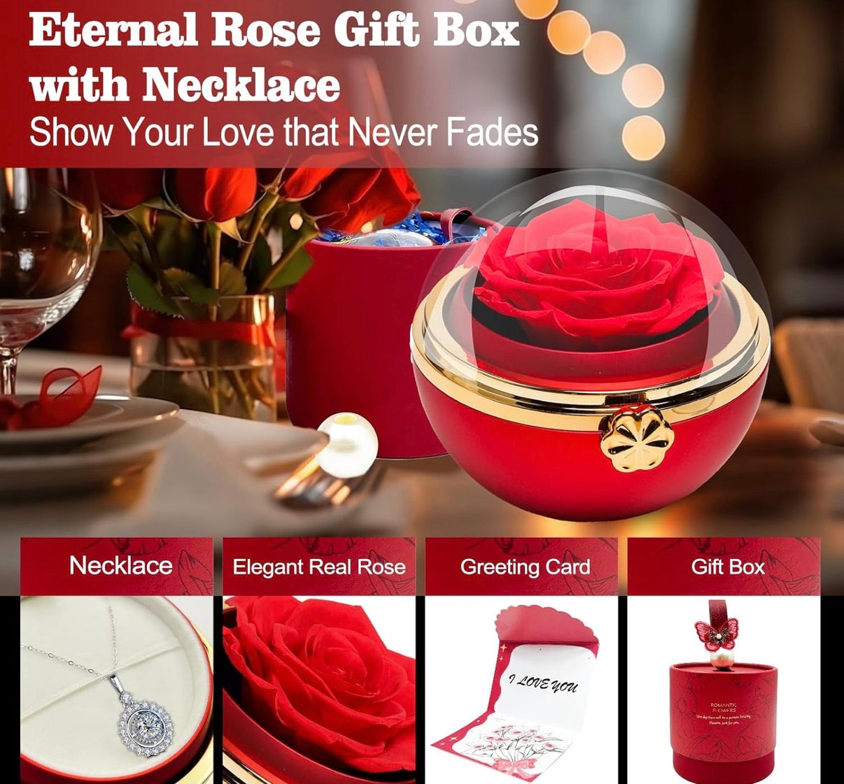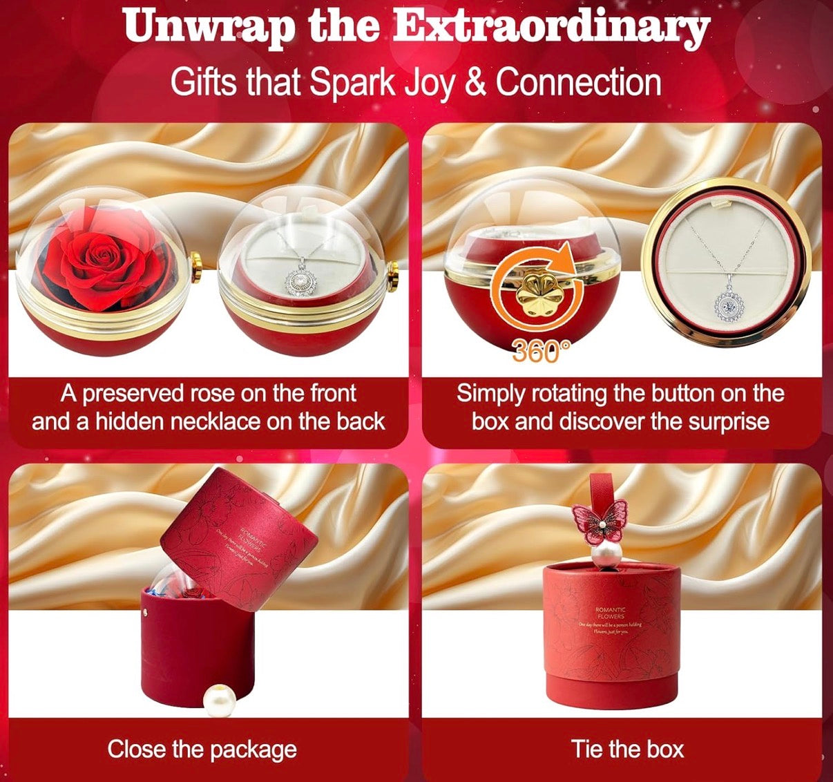 - Elegantly Crafted Preserved Flowers Necklaces for Women--Each set includes a forever rose, a sparkling moissanite pendant sterling silver necklace, a sophisticated red box and and a personalized greeting card - carefully designed, suitable for all occasions.