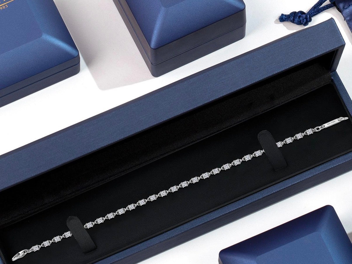 - DAZZLING BRILLIANCE: Adorn your wrist with our exquisite 925 sterling silver with 925 stamp tennis bracelet, or opt for the luxurious 18k gold plated version. Both feature a radiant 2.5MM White Moissanite center stone and a total carat weight of 1.76 Cttw.