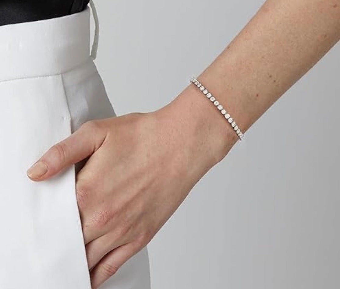 Moissanite Tennis Bracelets for Women White Gold Plated 925 Sterling Silver Round Chain Sparkling 3mm Diamond VVS1 D Color Solitaire.
